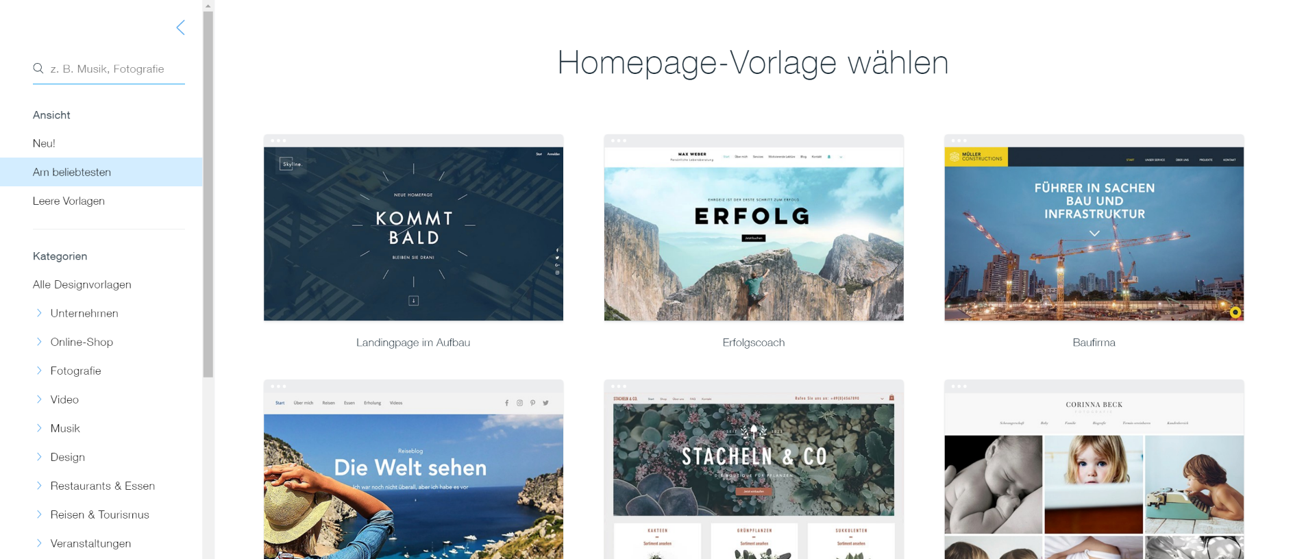 - Wix Homepage-Vorlagen