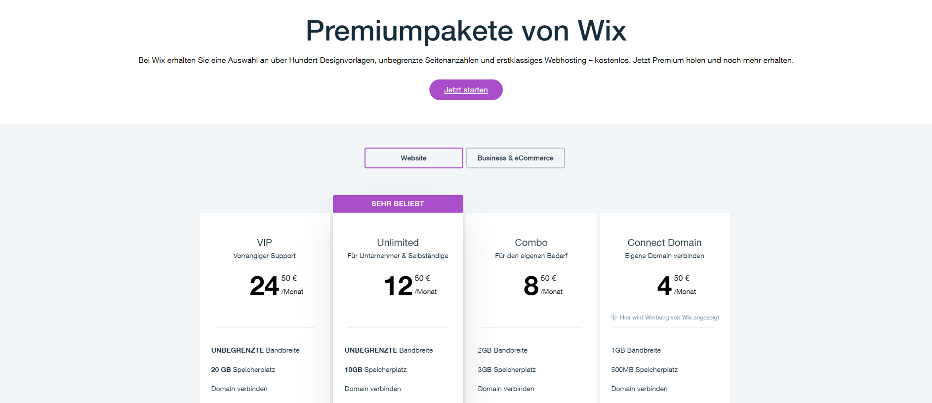 - Wix Preise/Tarife im Überblick